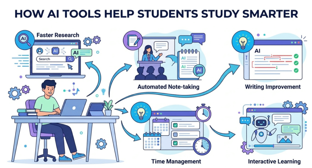 Whether you are preparing for school exams, college assignments, or university research projects, AI tools can make studying more efficient and organized. Instead of spending hours searching for information or managing notes, students can use intelligent tools to simplify these tasks and save valuable time.