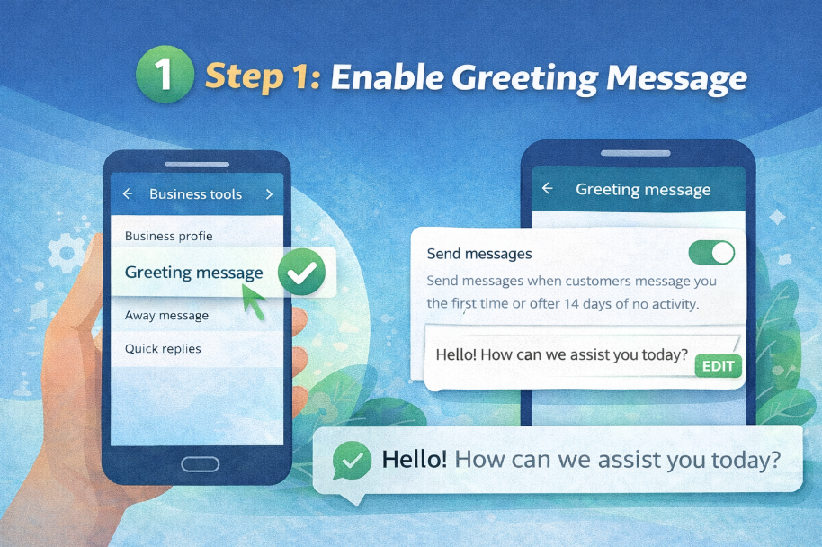 How to Automate WhatsApp Messages in 2026 Greeting messages are sent when a customer contacts you for the first time or after a long gap. You can configure this in Business Tools under Greeting Message. Once enabled, every new user will receive a welcome message automatically.