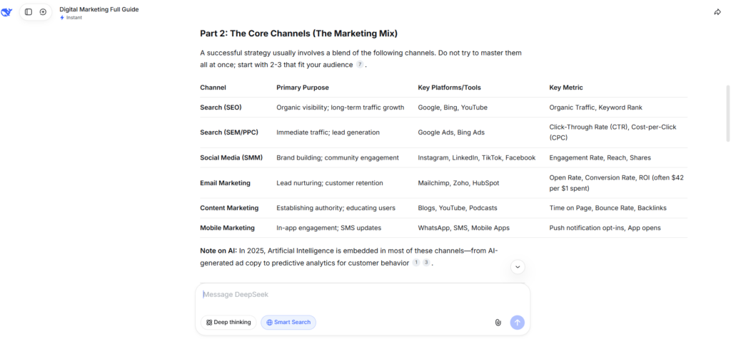 - DeepSeek AI → Content generation and ideas