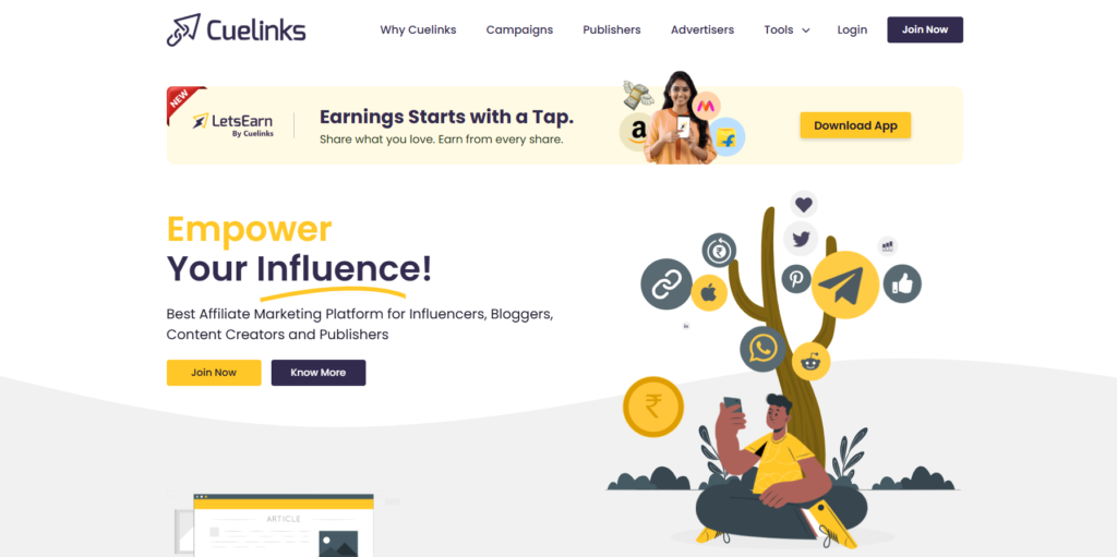 Method 3 — Cuelinks Affiliate Program (Best for Bloggers and High-Volume Sharers)