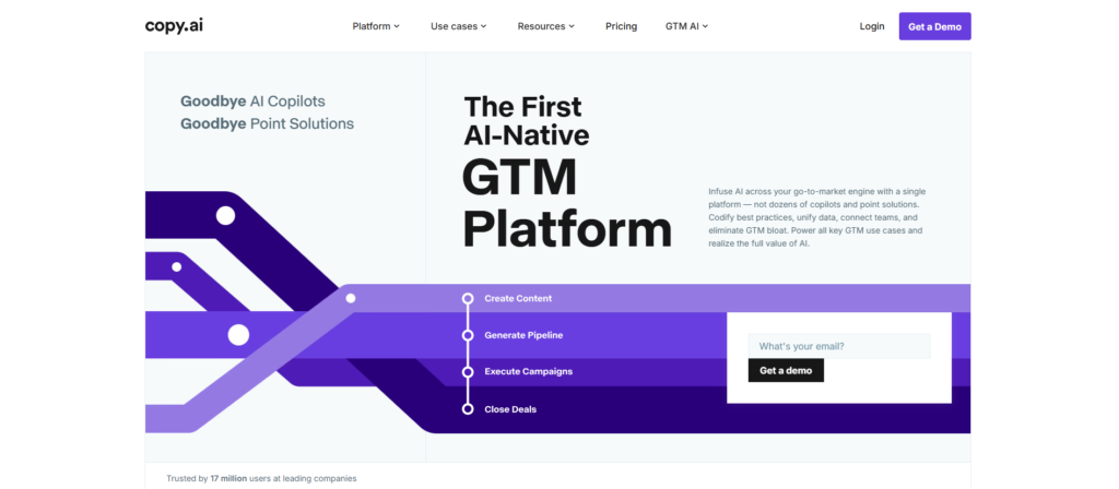 Copy.ai is an AI-powered writing assistant designed mainly for business and marketing content. It helps generate ideas, drafts, and copy for many common needs such as: