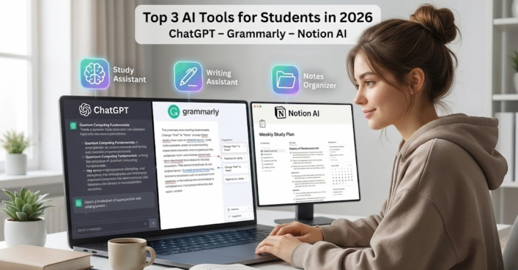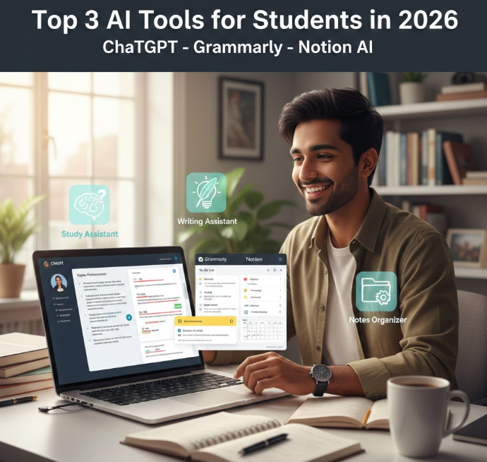 Top 10 AI Tools for Students in 2026:- Artificial Intelligence is no longer a futuristic concept or a buzzword limited to tech experts. In 2026, it has become an everyday academic companion for students across schools, colleges, and universities. Today’s students are not just studying harder—they are studying smarter, faster, and more efficiently with the help of AI.