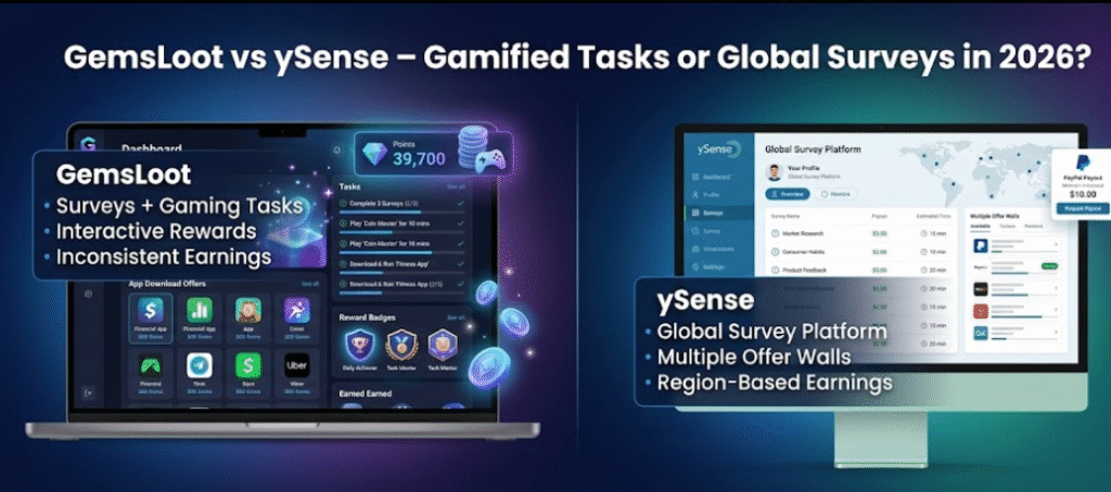 GemsLoot combines surveys with a more gamified reward structure. In addition to surveys, users can complete small promotional tasks, app downloads, and gaming-related activities to earn points.