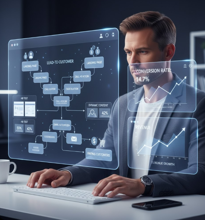 This creates what experts call “self-optimizing marketing funnels.”
