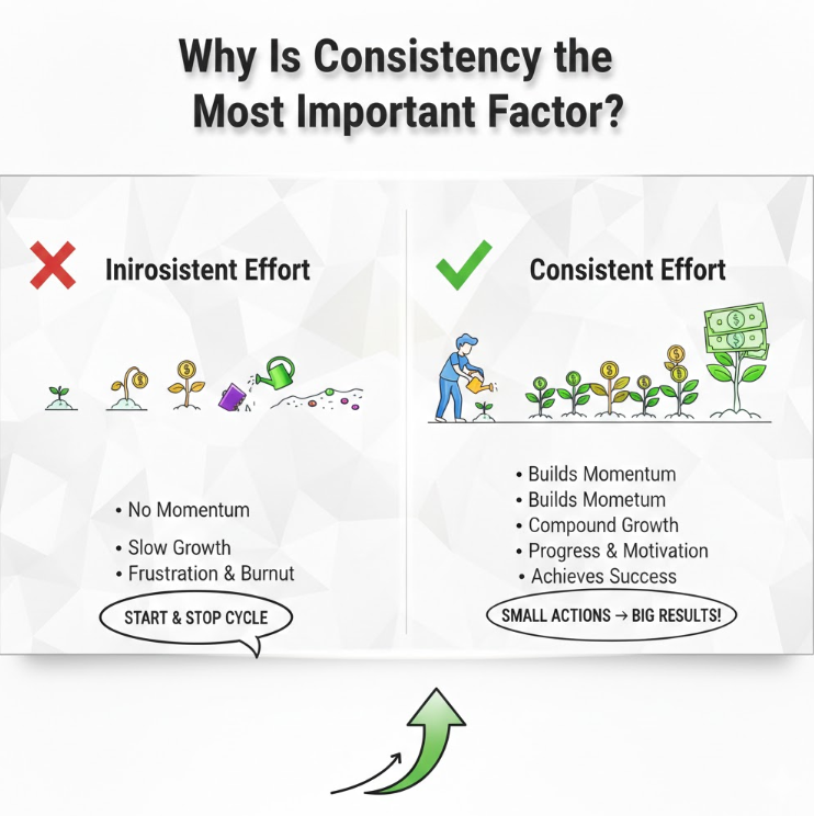 Consistency is what creates the difference you see between ordinary people and successful people. Most people do not fail because their idea is wrong, but because they give up their efforts midway.