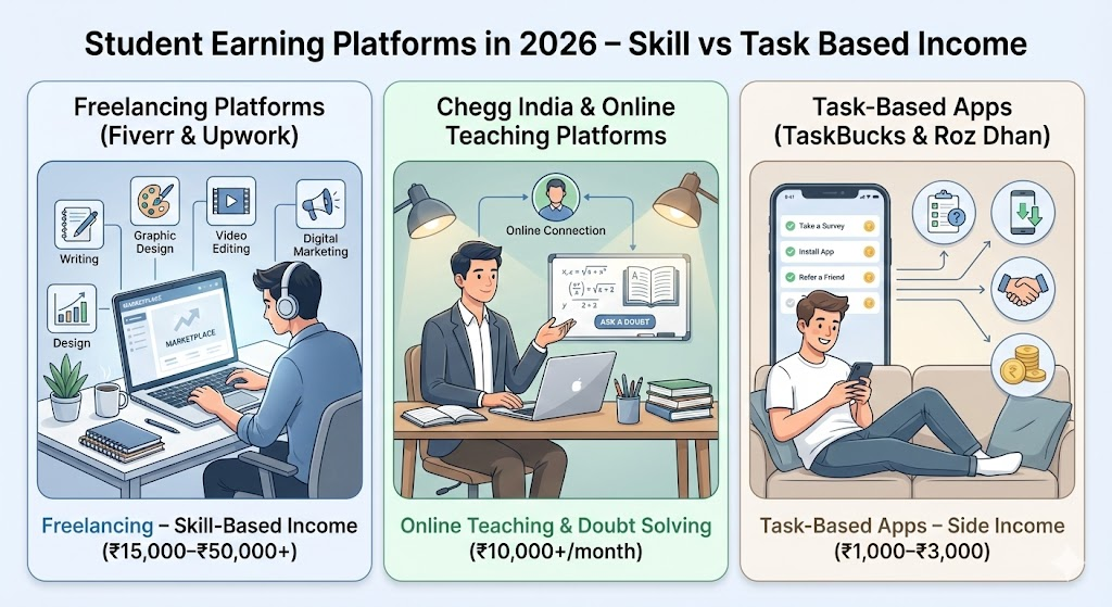 By 2026, smartphones and internet access have become an essential part of almost every student’s daily life. Digital payments, UPI, online wallets, and remote work culture have opened new earning opportunities that were not easily available earlier. Earning is no longer limited to traditional physical part-time jobs.